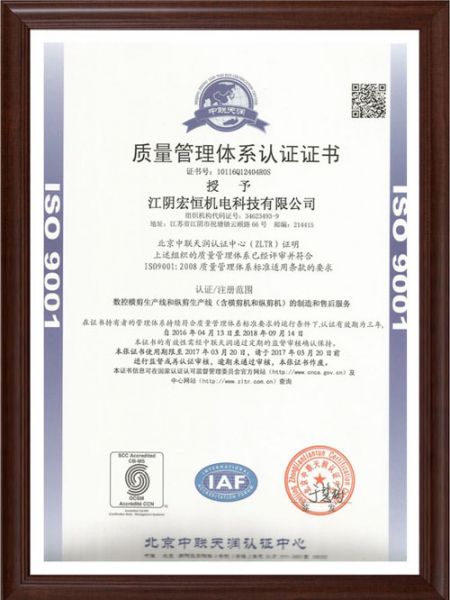 质量管理体系认证证书-英文